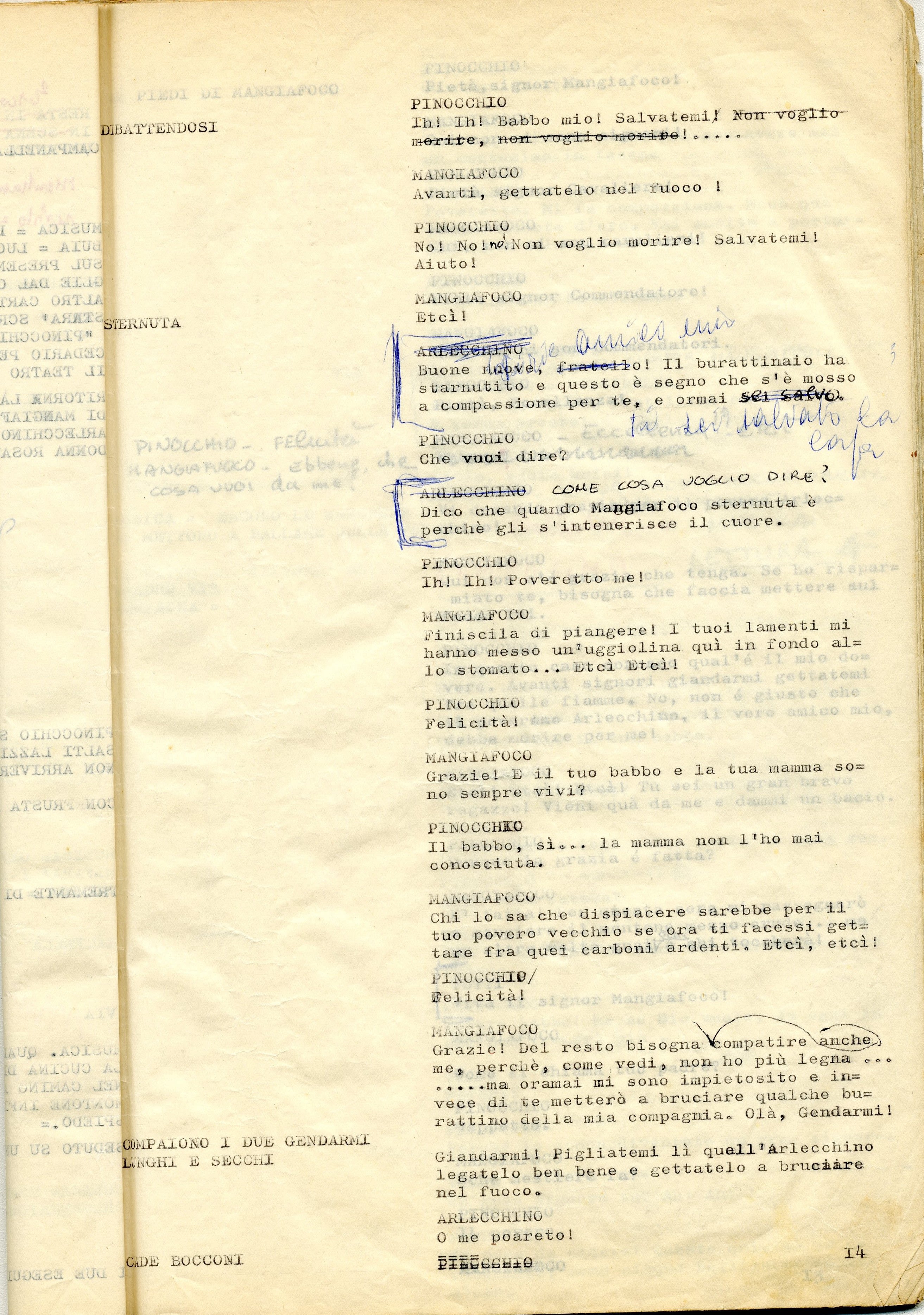 Così a partire dal 1961, l'allestimento vede sulla scena Geppetto, Mastro Ciliegia, Mangiafuoco e la Fatina interpretati da attori e attrici accanto al popolo di legno. Questa innovazione, che non ha precedenti, costringe a una serie di cambiamenti anche tecnici.