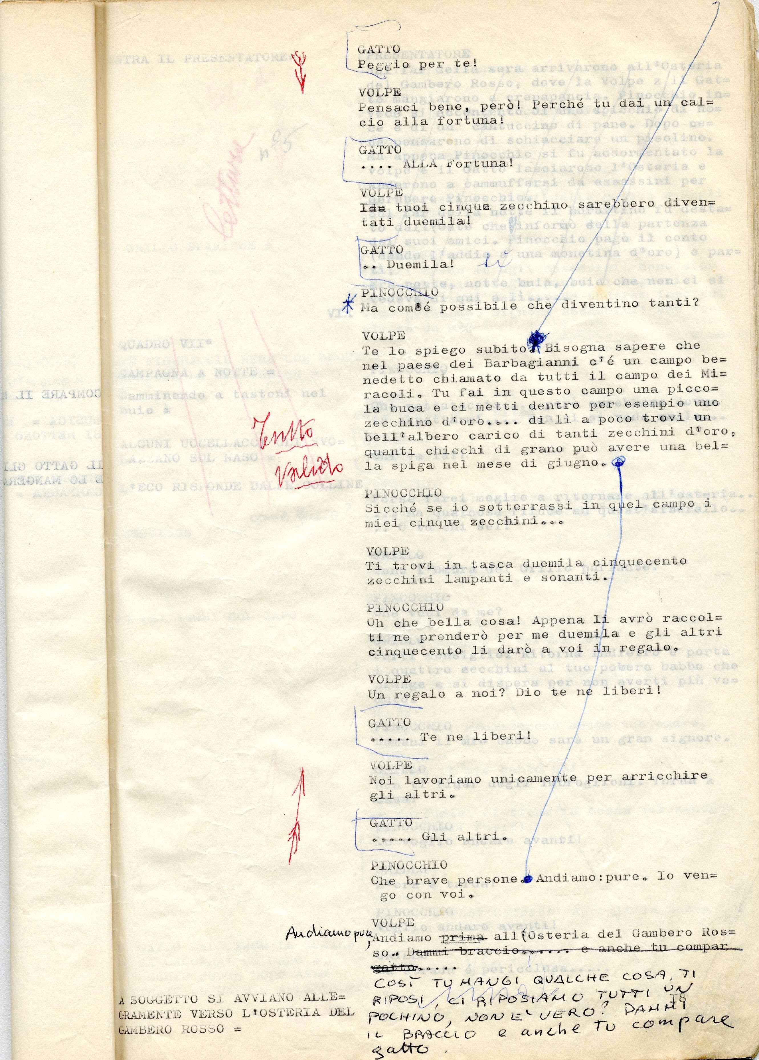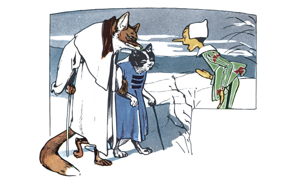 VOLPE: Ascolta Pinocchio. Vuoi tu di cinque miseri zecchini farne cento, mille, duemila?