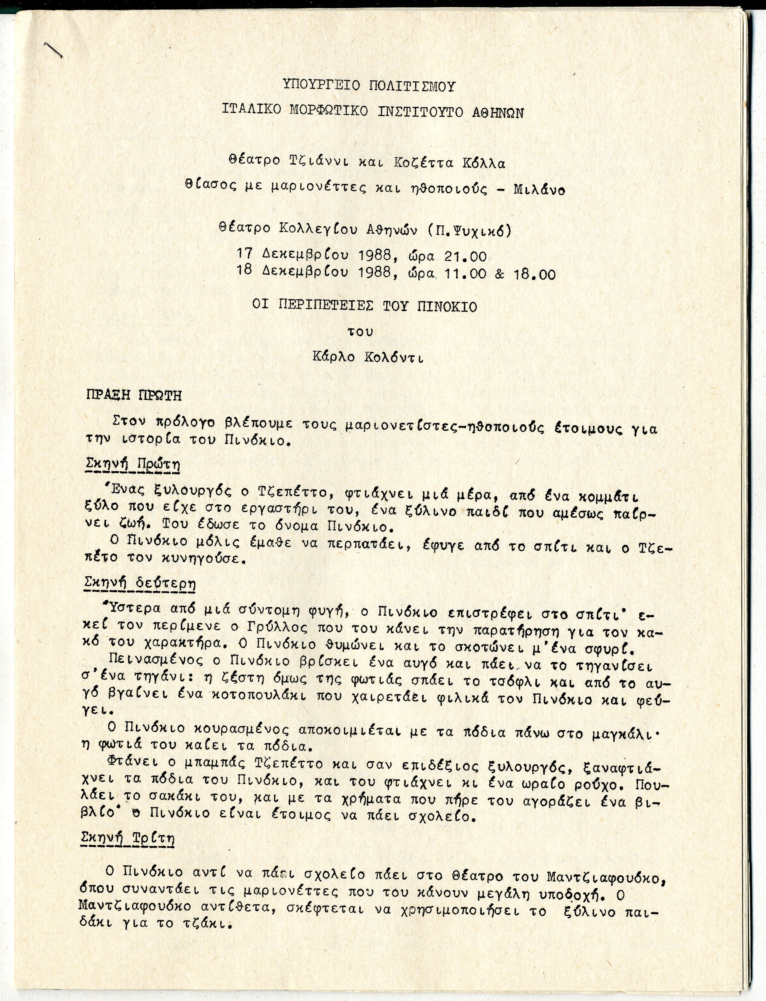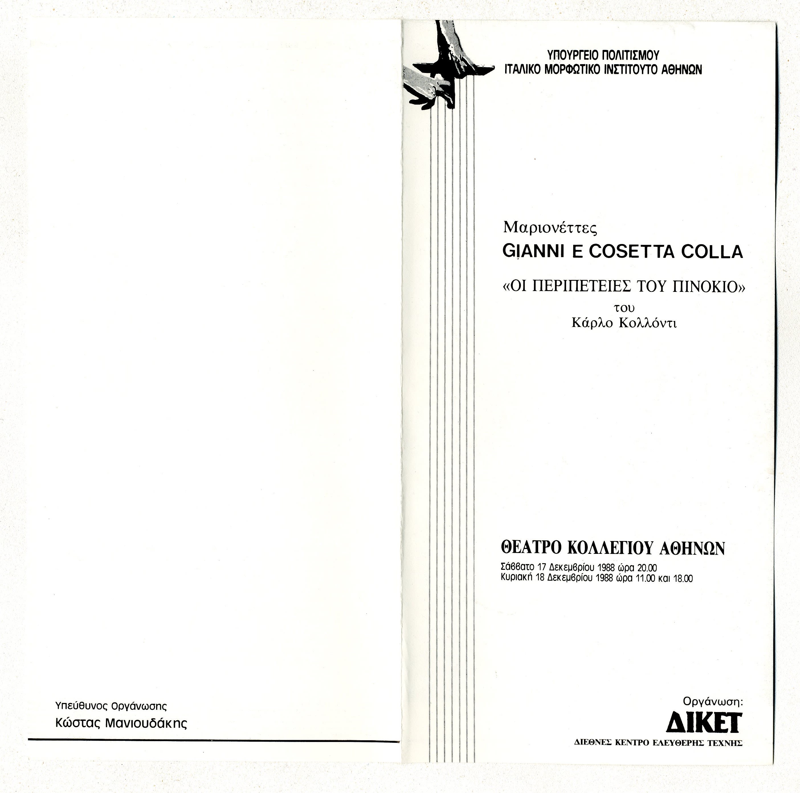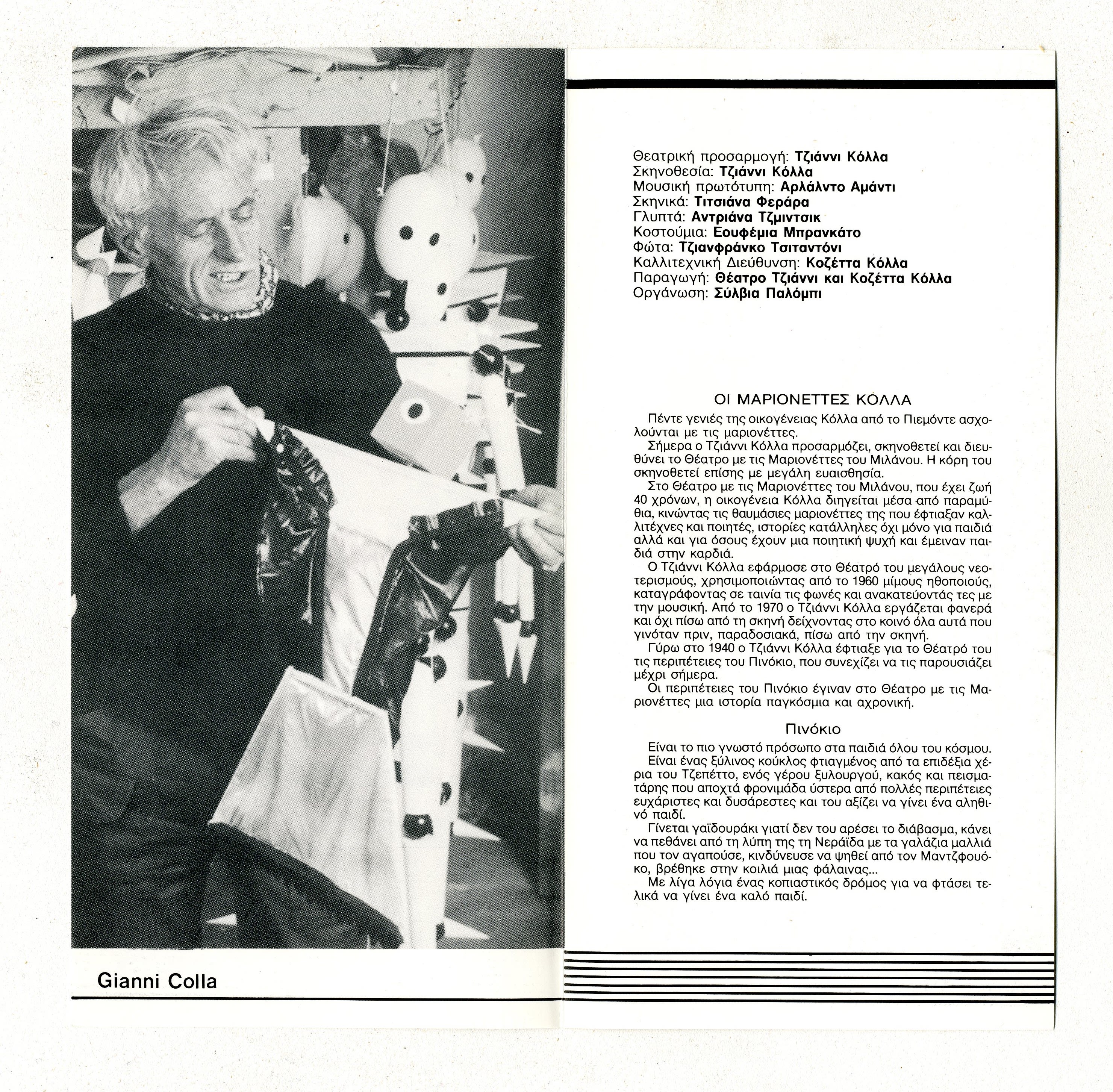 Le avventure di Pinocchio è lo spettacolo-mito della compagnia Colla, segno di grandi svolte. È infatti l’opera che meglio rappresenta la visione di Gianni Colla e del suo modo di "fare teatro".