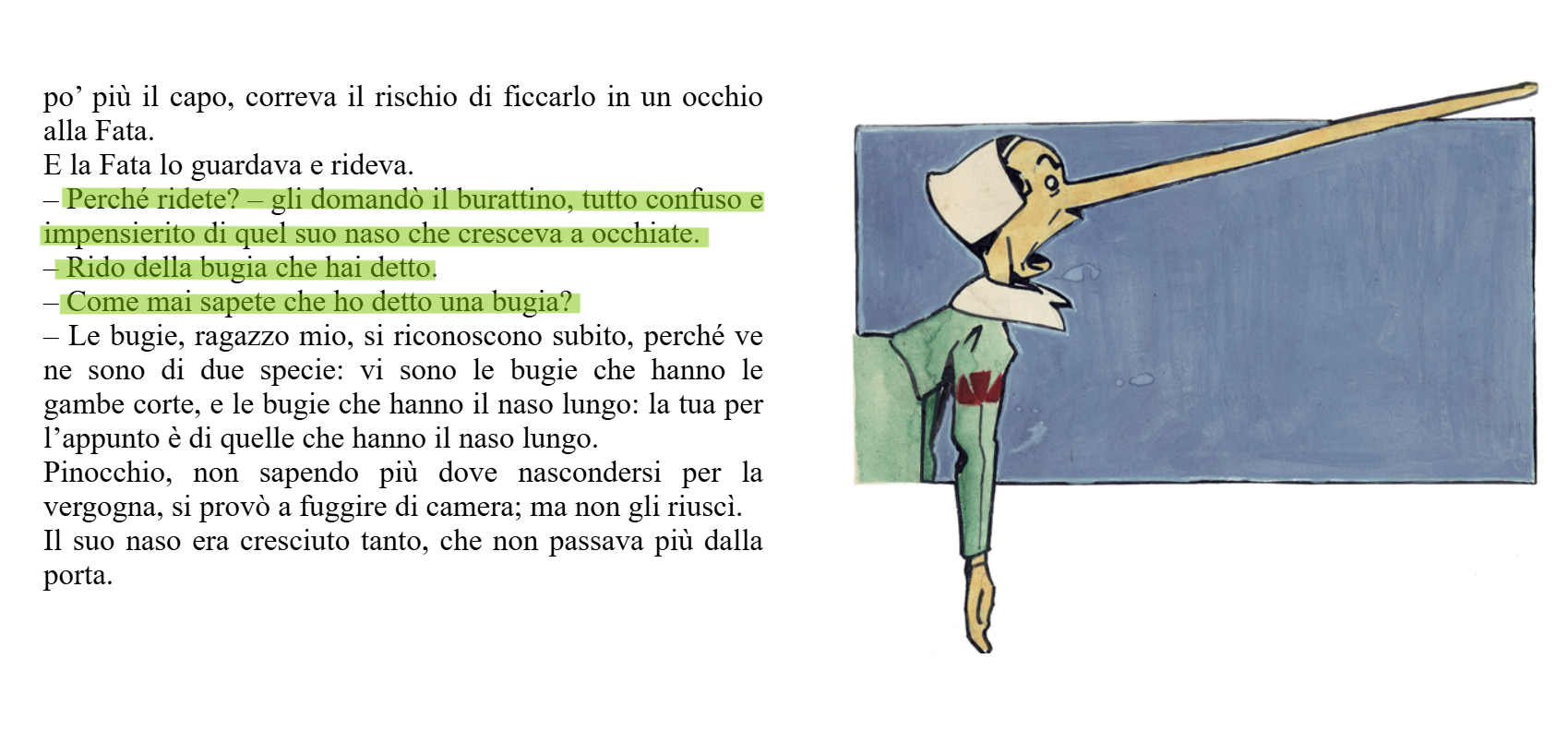 PINOCCHIO: Oh Fatina mia guardate il mio naso! Poveretto me. Ma cosa succede e perché ridete?