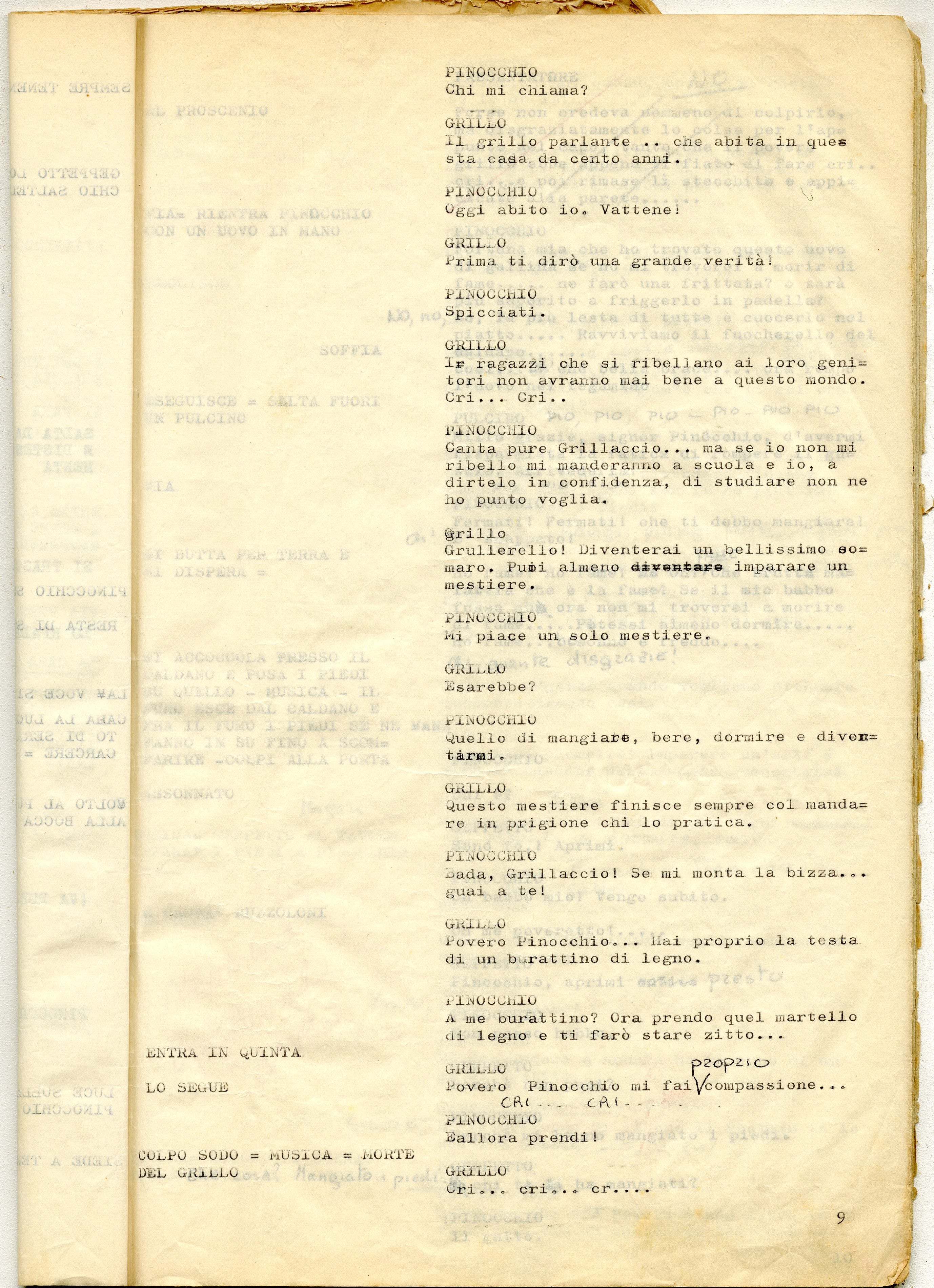 PINOCCHIO: Canta pure grillaccio... ma se io non mi ribello mi manderanno a scuola e io, a dirtelo in confidenza, di studiare non ne ho punto voglia.